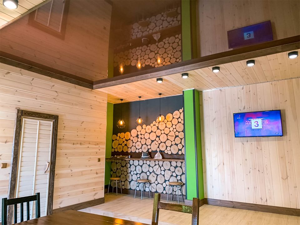 Размещение в каждой сауне до 15 человек. Здесь можно организовать небольшое праздничное мероприятие, банкет.
